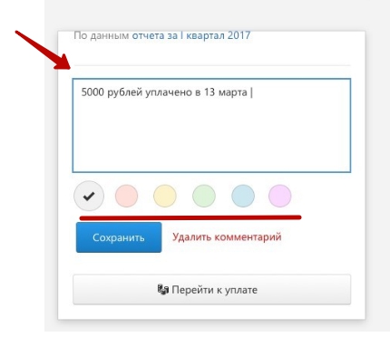 В Таблице отчетности появилась возможность добавлять пометки к платежам и выделять их разными цветами. Это может пригодиться, если оплата проходит не за один раз или если с предприятием работают сразу несколько человек.