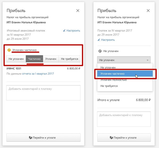 При клике на любую ячейку платежа в Таблице отчетности появляется информационное окно с названием, сроком и периодом платежа. Статус платежа при этом выбирается самостоятельно. Теперь список статусов пополнился новым — «Уплачен частично».